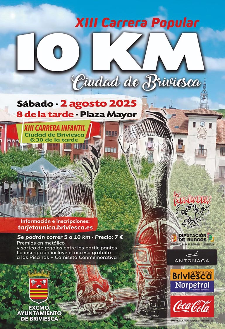 El sábado 2 de agosto, la localidad de Briviesca acogerá la XIII Carrera Popular 10 Km Ciudad de Briviesca, una cita deportiva ya consolidada dentro del calendario estival de la provincia. La prueba, organizada por el Ayuntamiento de Briviesca y el Club Atletismo Briviesca‑Norpetrol, cuenta con la colaboración del Instituto Provincial para el Deporte y Juventud (IDJ) de la Diputación de Burgos.