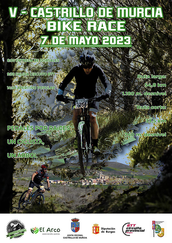 La V edición de la Castrillo de Murcia "Bike Race" será la 3ª prueba puntuable del Circuito Provincial de BTT. Esta edición tendrá dos opciones de recorrido, uno de 55 km con 1.170 m positivos y otra opción más corta de 34 km con 740 m de desnivel positivo.