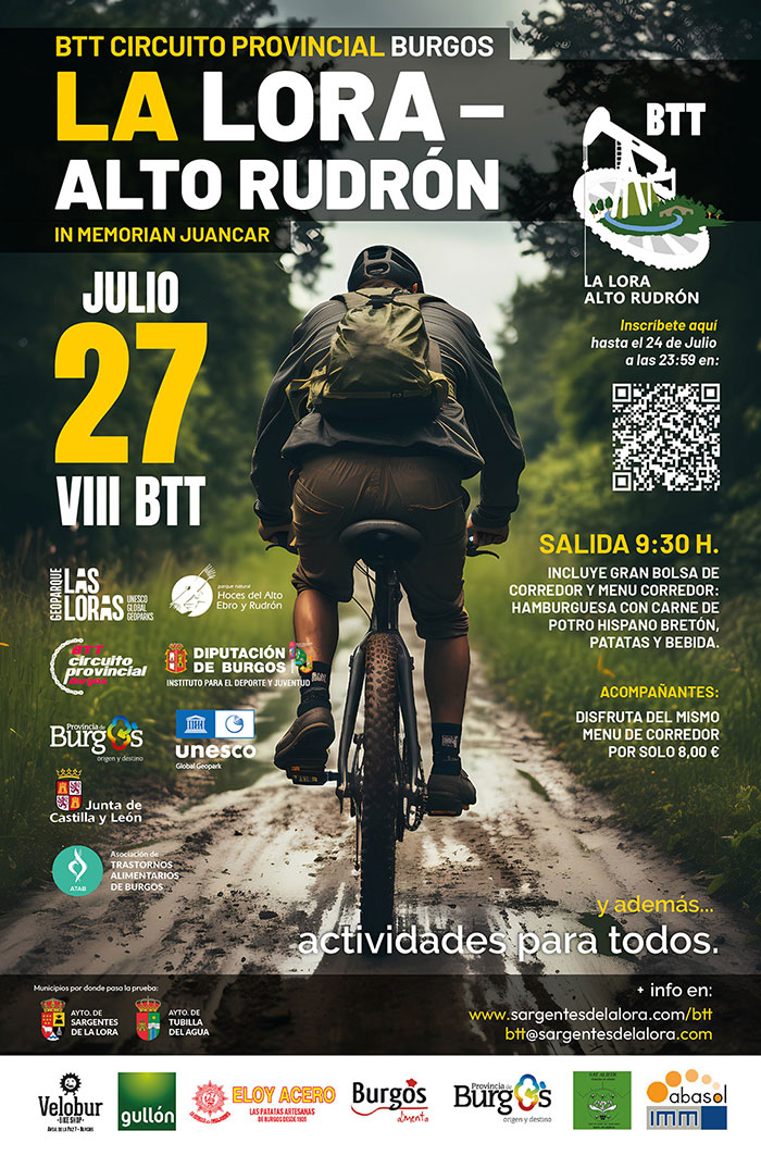 El próximo domingo 27 de julio, a partir de las 9:30 horas, la localidad de Sargentes de La Lora acoge la VIII edición de la BTT La Lora – Alto Rudrón, una prueba deportiva de carácter popular incluida en el XV Circuito Provincial de BTT de la Diputación de Burgos. Esta cita será, además, la octava prueba puntuable del calendario provincial, en una temporada que está consolidando una alta participación y un gran nivel organizativo en cada sede.