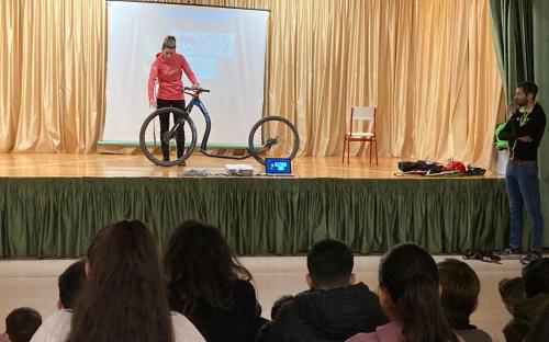 Dentro de la actividad de Ciclo de Conferencias Deportivas, el mundo del mushing llegó a los escolares de Villadiego de la mano de Rodrigo y Verónica Alonso (SoloRunners Mushing) . Además, estuvieron acompañados por los perros Nala, Aquiles, Orión y Sia.