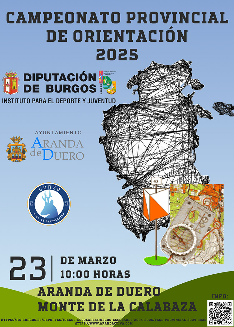 En cuanto a la Fase Provincial de Orientación, ésta se llevará a cabo en el Monte "La Calabaza" de Aranda de Duero en la jornada dominical del 23 de marzo, a partir de las 10:00 horas. Podrán participar escolares desde benjamines a juveniles.
