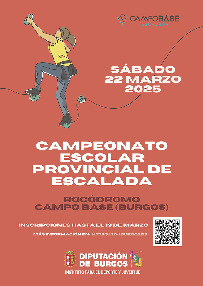 El próximo fin de semana viene con varios eventos de los Juegos Escolares, siendo las finales provinciales de Escalada y Orientación los más destacados. En cuanto al Campeonato Provincial de Escalada, se celebrará el sábado 22 de marzo en el Rocódromo Campo Base de Burgos (Calle Condado de Treviño, 87) y están llamados a participar escolares en las categorías de benjamín, alevín, infantil y cadete, tanto en masculino como en femenino.