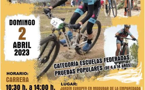 Prueba perteneciente al XXXVII Circuito Provincial de Escuelas de Ciclismo y a la Copa Castilla y León de Escuelas BTT, en la que participarán niños y niñas de 4 a 14 años, tanto federados como populares. Será el próximo domingo 1 de abril en el Jardín Europeo de Modúbar de la Emparedada.