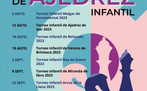 Primera prueba puntuable del Circuito de Ajedrez en categoría infantil, que se llevará a cabo en Melgar de Fernamental el próximo sábado 5 de agosto a partir de las 10:00 h. El Torneo computa para la obtención de premios del circuito infantil como Tipo I.