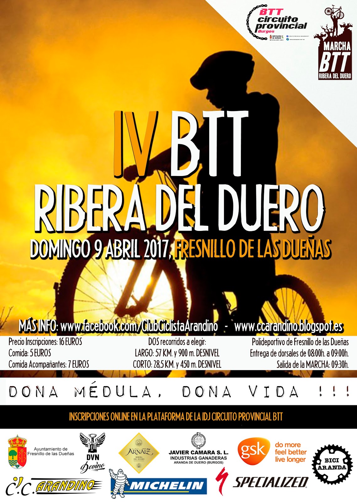 Este próximo domingo 9 de abril, podremos disfrutar de la marcha que dará el pistoletazo de salida a la VII edición del Circuito Provincial btt de Burgos. Será la IV BTT RIBERA DEL DUERO, con salida en la localidad de Fresnillo de las Dueñas, próxima a Aranda de Duero.