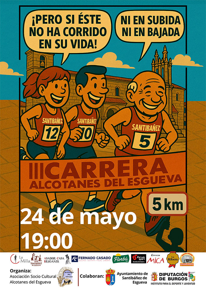 El próximo sábado 24 de mayo, a partir de las 19:00 horas, Santibáñez de Esgueva acogerá la tercera edición de la Carrera Popular Alcotanes del Esgueva, una cita deportiva ya consolidada en el calendario del XLIV Circuito Provincial de Carreras Pedestres Populares de la Diputación de Burgos.