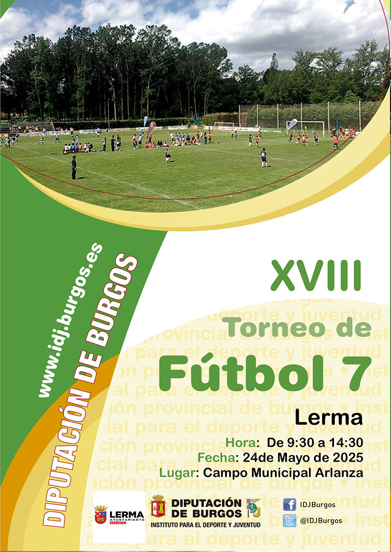 El sábado 24 de mayo se celebrará la segunda jornada del XVIII Circuito Provincial Escolar de Fútbol 7, organizado por el Instituto Provincial para el Deporte y Juventud (IDJ) de la Diputación de Burgos y los Ayntamientos de las localidades participantes. En esta ocasión, la actividad deportiva tendrá lugar de forma simultánea en las localidades de Briviesca, para los equipos del Grupo Norte, y Lerma, para los equipos del Grupo Sur.