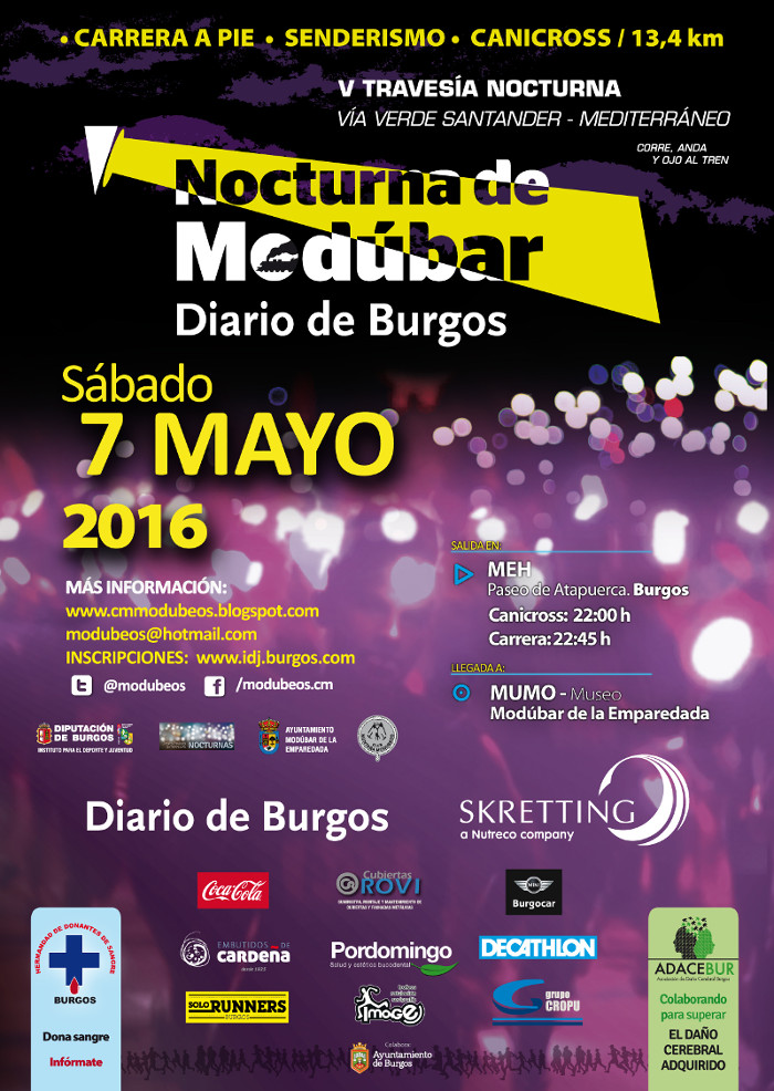 La carrera será el 7 de Mayo. A las 22:00 horas el canicross, a las 22:45 la carrera y 2 minutos después los senderistas.