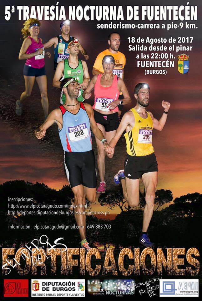 El Instituto Provincial para el Deporte y Juventud de la Diputación de Burgos y el Ayuntamiento / Club organizan la Travesía Nocturna V Travesía Nocturna "Sendero de las Fortificaciones" en Fuentecén, que se celebrará el próximo 18 de agosto de 2017 para las siguientes modalidades: Carrera a pie y senderismo.