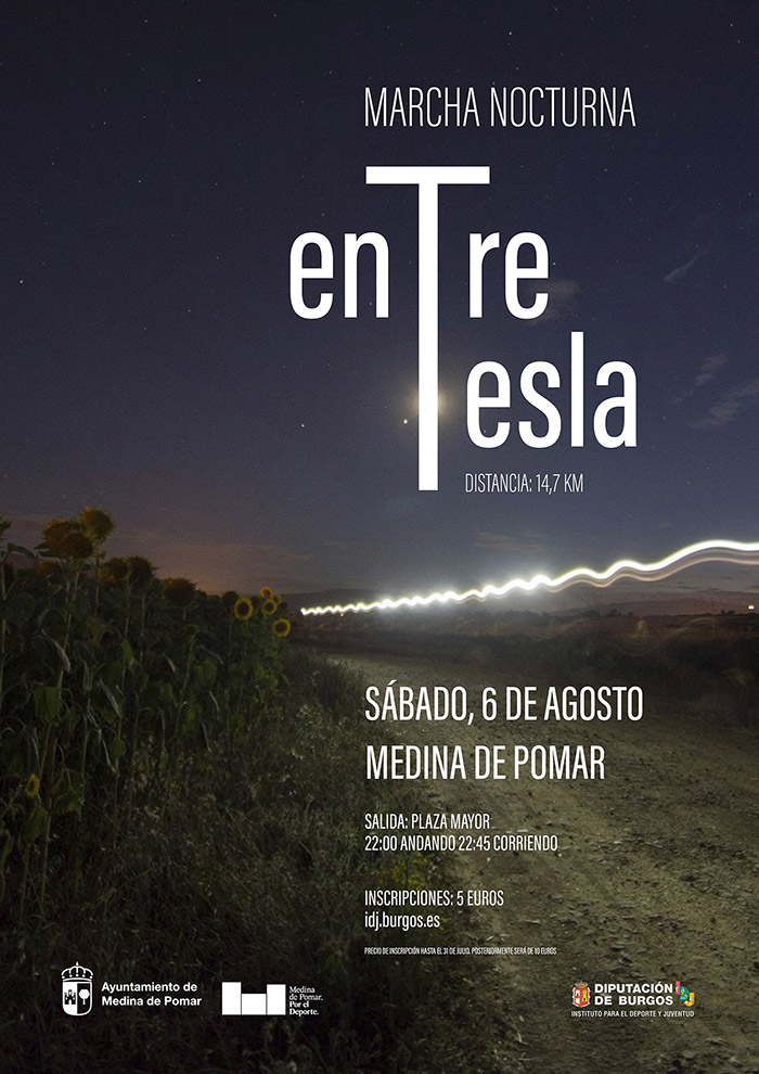 El Instituto Provincial para el Deporte y Juventud de la Diputación de Burgos y el Ilustre Ayuntamiento de Medina de Pomar, en colaboración con el la Asociación de Villacomparada, Bustillo, Paralacuesta y El Vado, organizan el día 6 de agosto, a partir de las 22:00 horas, la 10ª Marcha Nocturna Entre-Tesla.