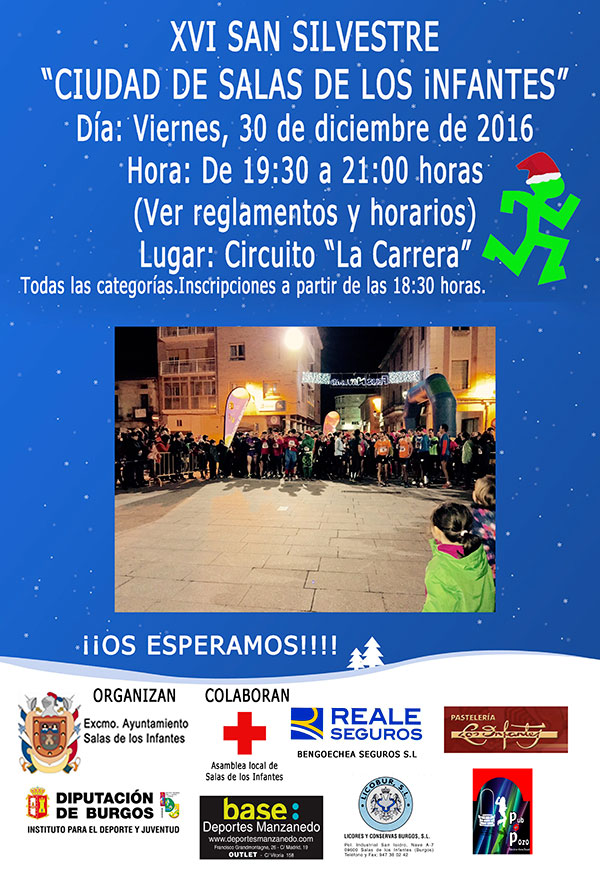 Inscripciones: A partir de las 18.30 h. del día 30 de diciembre en la planta baja del Ayuntamiento de Salas de los Infantes.