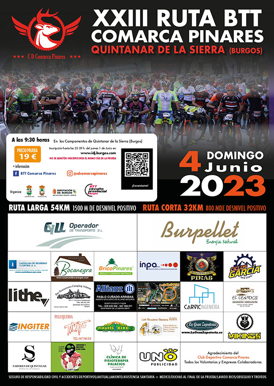 Quintanar de la Sierra acogerá la 4ª prueba puntuable del Circuito Provincial de BTT "Diputación de Burgos". Organizada por el Ayuntamiento de la localidad, el Instituto Provincial para el Deporte y Juventud de Diputación de Burgos, Burgos en Ruta BTT y en colaboración con el Club Deportivo Comarca Pinares, la ruta discurre a través de increíbles senderos rodeados de pinos, robles y hayas. Será el próximo domingo 4 de junio.