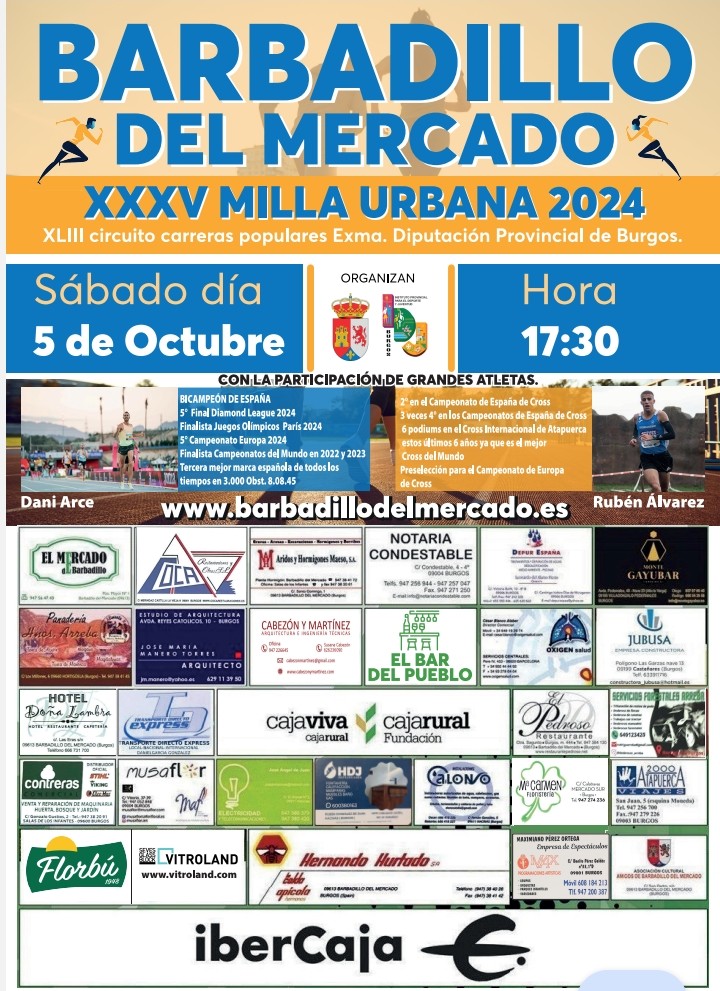 La 35ª edición de la Milla Urbana que se celebra en Barbadillo del Mercado el próximo sábado 5 de octubre será la penúltima prueba puntuable del XLIII Circuito Provincial de Carreras Pedestres Populares.