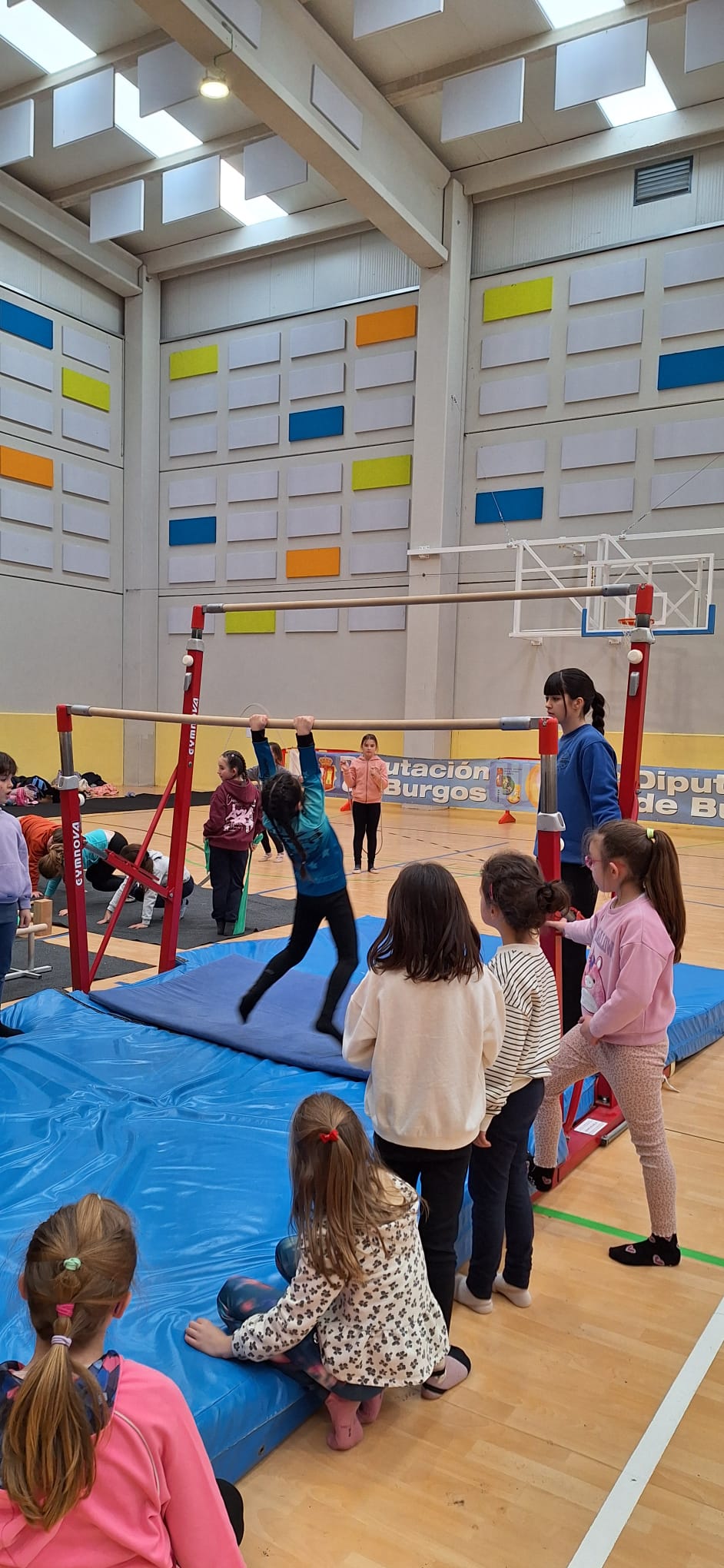 190 escolares de entre 4 y 14 años de la provincia de Burgos se reunieron el pasado sábado 15 de febrero de 2025 en la localidad de Roa de Duero para poner en práctica sus habilidades en Gimnasia.