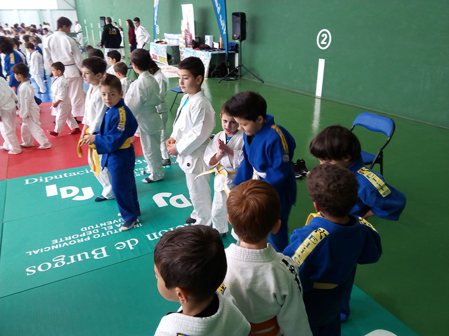 El pasado sábado se celebró en Lerma el Encuentro de Judo organizado por el IDJ de la Diputación de Burgos y el Ayto. de Lerma, dirigido por el Gimnasio Élite y patrocinado por La Flor Burgalesa. El frontón municipal albergó alrededor de 250 judocas en 8 tatamis preparados para la ocasión y participaron escolares de las categorías prebenjamín, benjamín y alevín de todos los niveles, puesto que en cada tatami había judocas con su respectivos cintos blancos, amarillos, verdes, etc.