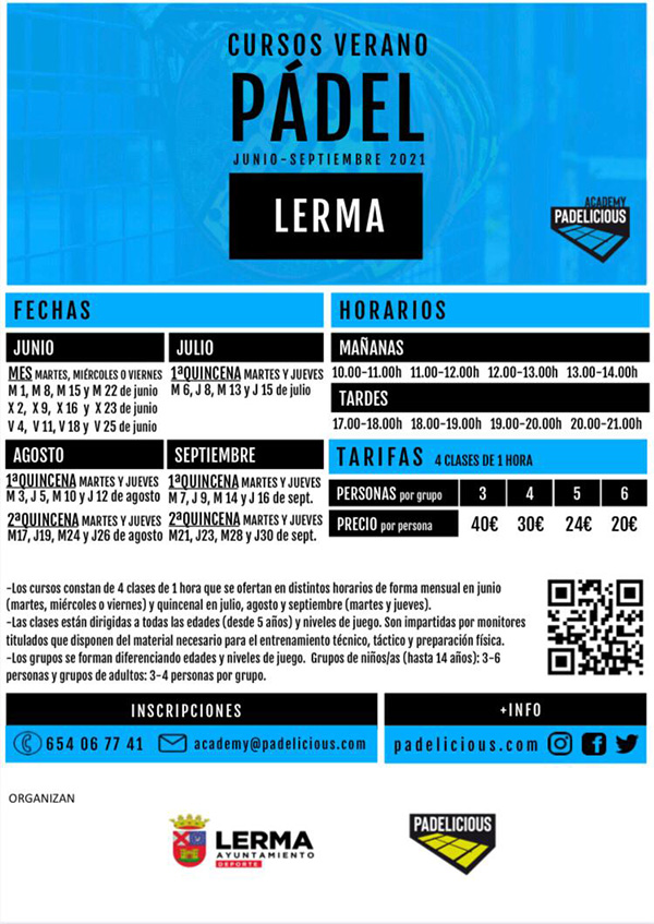 Los cursos constan de 4 clases de 1 hora de duración que se ofertan en distintos horarios de forma mensual en junio (martes, miércoles o viernes) y quincenal en julio, agosto y septiembre (martes y jueves). Las clases están dirigidas a todas las edades (desde 5 años) y niveles de juego.