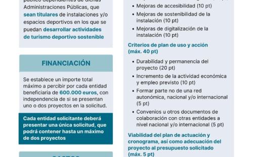 Esta línea de subvención, que tiene como beneficiarias a las Administraciones Públicas, cuenta con una dotación de 36 millones de euros, con los que el Gobierno de España refuerza su apuesta por el turismo deportivo sostenible.