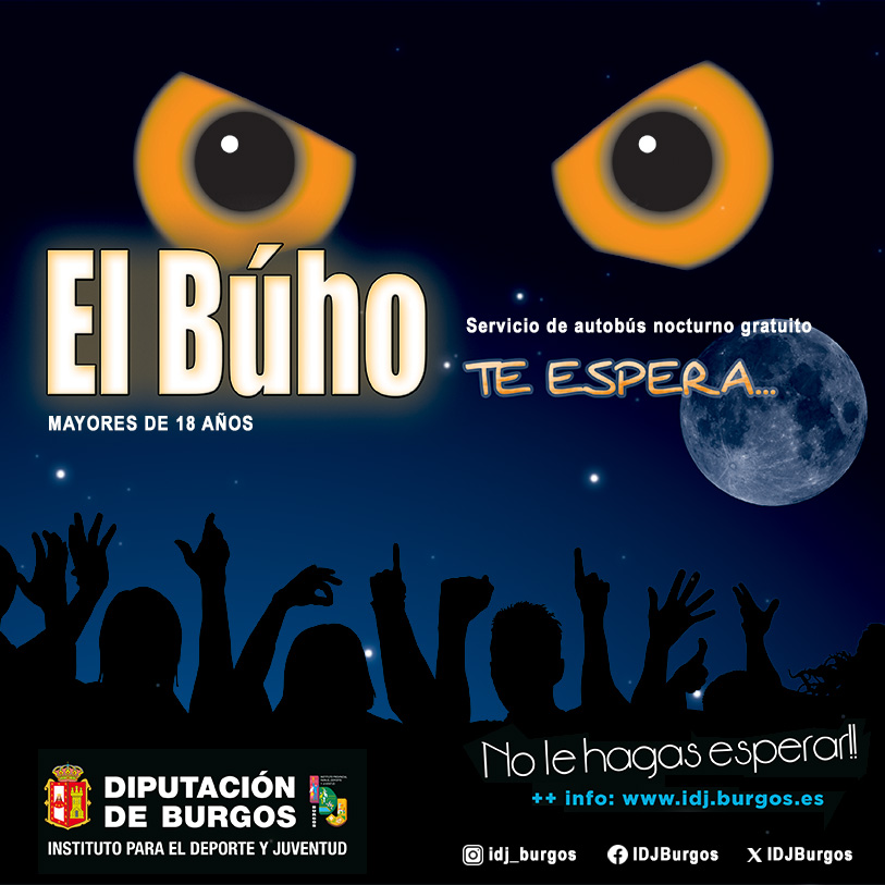 El Instituto Provincial para el Deporte y Juventud (IDJ) de la Diputación de Burgos abre hoy el plazo de presentación de solicitudes para adherirse al proyecto "Búho Nocturno", una iniciativa dirigida a facilitar un transporte seguro en horario nocturno para jóvenes de los municipios de la provincia durante la celebración de las Fiestas Patronales.