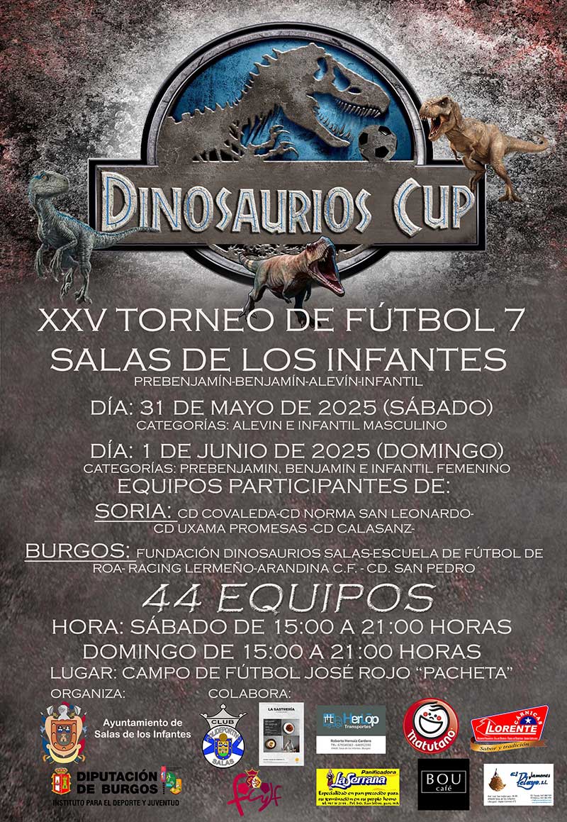 El Instituto Provincial para el Deporte y Juventud de Diputación de Burgos y el Ayuntamiento de Salas de los Infantes junto con la colaboración de la Delegación Burgalesa de Fútbol y el C. P. Salas organizan la XXV Dinosaurios Cup de Fútbol 7 en Salas de los Infantes, los días 31 de mayo 1 de junio en el cual van a participar 44 equipos de la provincias de Burgos y Soria. Es la tercera prueba puntuable del Grupo Sur del XVIII Circuito Provincial Escolar de Fútbol 7.