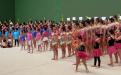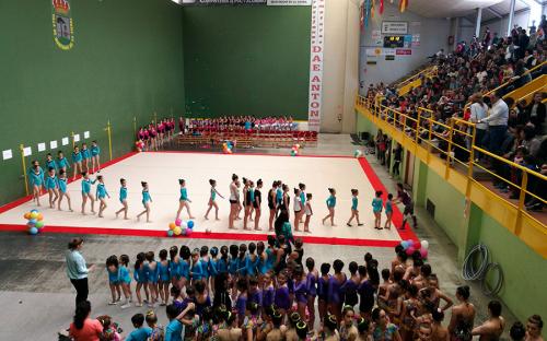 - 10:00 h. Llegada de cada localidad al frontón y a la zona del Instituto Tierra Alvar González, lugar donde las gimnastas se cambiaron y prepararon para su actuación.