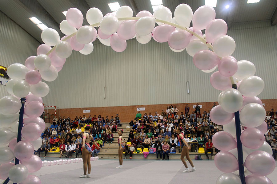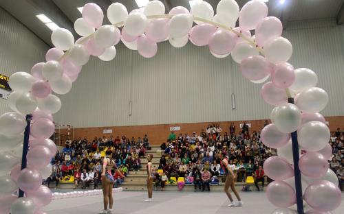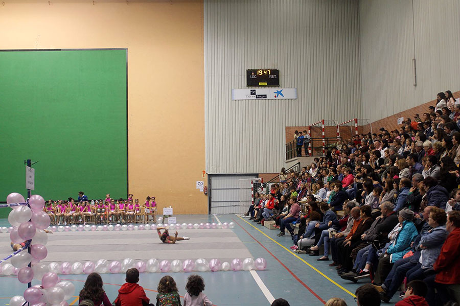 El recinto deportivo sslense se llenó para ver el trabajo realizado durante todo el año por estas jóvenes gimnastas. Se aprovechó para homenajear, por el Ayuntamiento y por toda la familia de la rítmica, a nuestras gimnastas Eider y Claudia por sus éxitos deportivos conseguidos en este año con el Club Gimnasia Duero.