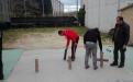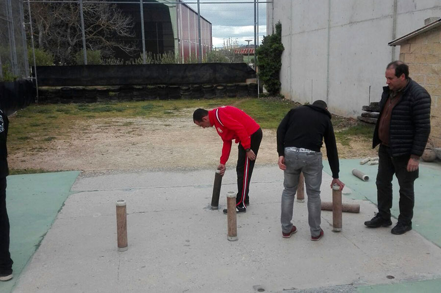 En la foto vemos algo que hay que hay que hacer y casi nunca se ve, el hecho de poner los bolos entre los jugadores.