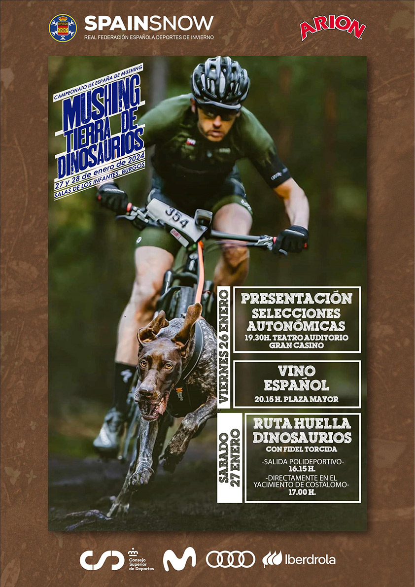 Ya está aquí el VIII Mushing Tierra de Dinosaurios en Salas de los Infantes (Burgos), valedero para el Campeonato de España de Mushing Tierra. Está organizado por el Club Canicross Burgos, el Ayuntamiento de Salas de los Infantes, el Instituto Provincial para el Deporte y Juventud de Diputación de Burgos, junto con SpainSnow. De esta prueba saldrán los ganadores de España de la edición 2024.
